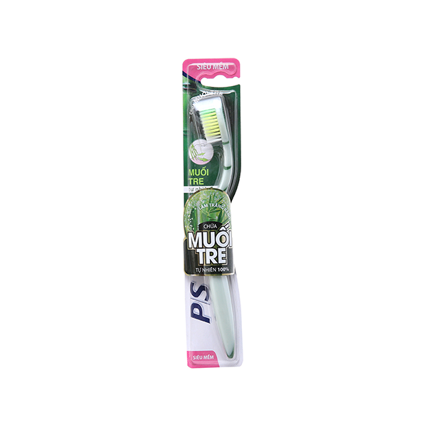 Bàn chải đánh răng P/S thương hiệu Anh & Hà Lan nổi tiếng, nhiều người tin dùng. Bàn chải P/S muối tre siêu mềm có lông chải có chứa muối tre tự nhiên giúp kháng khuẩn. Cổ 3 ngấn của bàn chải giúp chải sạch các mặt răng ngay cả răng trong cùng